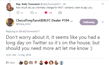 The story doesn’t end there, as shortly after receiving her new furry artwork, it became the profile picture for her election campaign page on Facebook.
